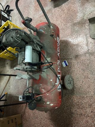 Compresor de aire Polaris con depósito de 75 litros. - Depósito de 75L. - Motor con ventilador para refrigeración, tengo la tapadera -El motor no funciona no se que le pasa, lleva el condensador electrico nuevo.