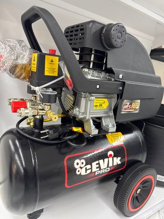 Compresor de aire Cevik Pro. - Depósito negro. - Con rejilla protectora para el motor y ventilador. - Incluye manómetro y regulador.