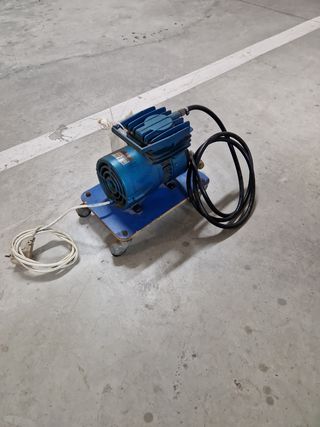 Compresor de aire Michelin de color azul. - Depósito de aire. - Dos manómetros. - Interruptor de encendido/apagado. - el compresor necesita una revisión, antes cargaba hasta 6 bares ahora llega hasta 2 bares y no para al no llegar a llenarse.
