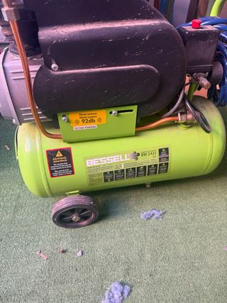 Compresor de aire Bessell con depósito verde. - Modelo: VW-242D - Ruedas para fácil transporte - Manómetros para control de presión dos años muy poco uso para hinchar algún neumatico. Particular vendo por mudanza. Juan 633 81 91 63