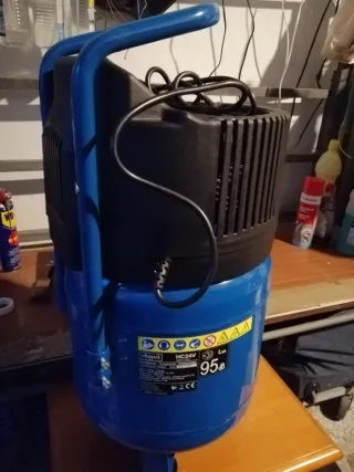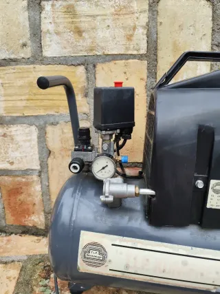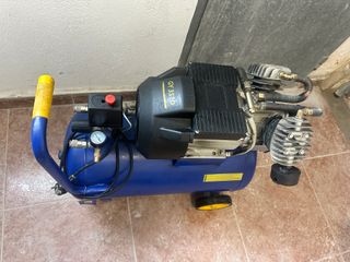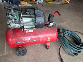 Vendo compresor de 50 litros y 2 CV de potencia en excelente estado. Ideal para pintura, bricolaje y herramientas neumáticas. Presión de hasta 8-10 bares con regulador. Doble manómetro de control. Ruedas y asa para fácil transporte.