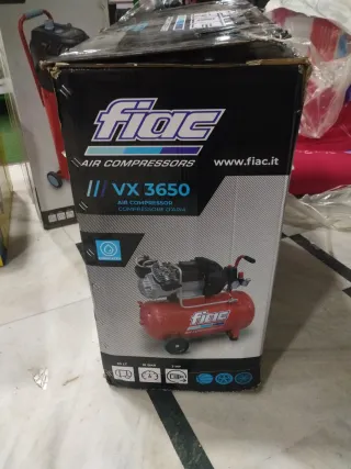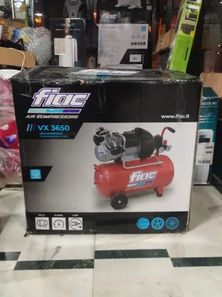 Compresor de aire FIAC VX 3650 en buen estado. Ideal para diversas tareas. - Capacidad del depósito: 50 Litros. - Presión máxima: 10 BAR. - Potencia: 3 HP. - Diseño bicilíndrico.