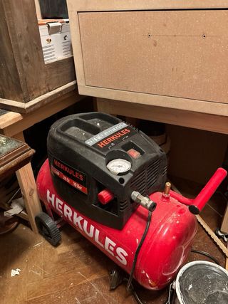 Compresor de aire de la marca Scheppach con un depósito de 24 litros.Usado dos veces - Capacidad del depósito: 24 L - Potencia: 2 HP - Presión máxima: 10 bar - Caudal de aire: 180 L/min