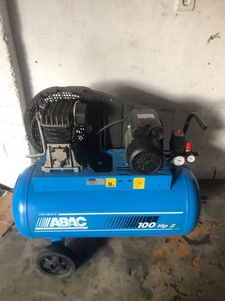 Compresor de aire Abac con depósito de 100 litros. Es usado pero muy muy poco no se ha puesto mas de 20 veces esta como nuevo no soy pintor ,, se recoje en mano , mando fotos reales a verdaderos interesados - Color azul. - Ruedas para facilitar el transporte.