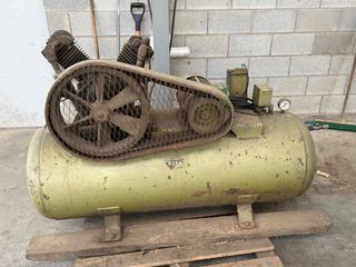 Compresor de aire de 200 litros (10 kg/cm2) 2 HP, en buen estado. Ideal para trabajos de bricolaje o profesionales. Recién realizado el mantenimiento: limpieza general, estado de funcionamiento, filtro de aire, aceite y revisión de correa y motor. - Diseño robusto y duradero. - Fácil transporte con ruedas. - Silencioso (motor FIAC de 2 caballos). - Incluye ruedas para facilitar su transporte. - Se encuentra en buenas condiciones estéticas.