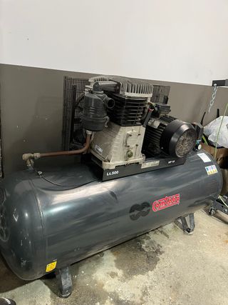 Compresor de aire de 500 litros con motor HP 10. - Marca: Comtabe - Modelo: LL500 HP 10 - Capacidad del depósito: 500L - Color: Gris oscuro Solo ha tenido 1 año de uso, Prácticamente nuevo a extrenar