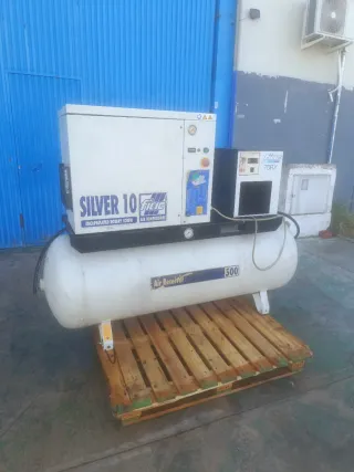 Compresor de aire FIAC SILVER 10 con secador TDRY. - Capacidad del calderín: 500 litros. - Tipo: Tornillo rotativo encapsulado.