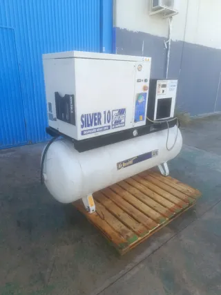 compresor de tornillo silencioso. 5.5 deposito de 200litros. refrigerador de aire para eliminar agua. valvula de escape en calderin para eliminar agua. 500h Hace falta hacerle puesta a punto. cambio aceite, rodamiento... precio a convenir