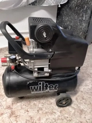 Compresor de aire de la marca Wiltec. - Color negro. - Incluye asa para transporte. - Ruedas para facilitar el movimiento.