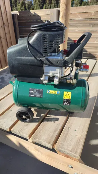 Compresor de aire de la marca Parkside, ideal para diversas tareas. - Incluye todos los accesorios. - Manómetro para control de presión.