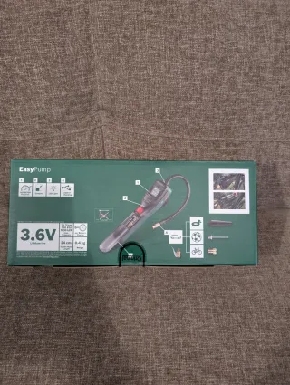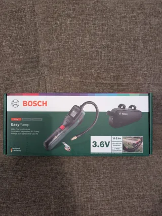 Compresor de aire compacto y portátil de la marca Bosch, modelo EasyPump. Recarga USB-C. Caja Sellada. - Incluye funda de transporte. - Presión máxima de 10.3 bar. - Función AutoStop. - Diseñada en Alemania.
