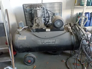 Compresor de aire de la marca Galagar, modelo LT.270. 11 baresEs un equipo robusto y funcional. - Depósito de gran capacidad. - Motor eléctrico. - Ruedas para facilitar el transporte.