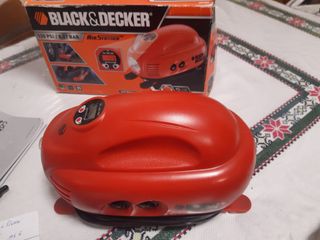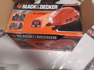 Compresor de aire de la marca Black & Decker. - Color rojo y negro. - Diseño compacto y portátil.