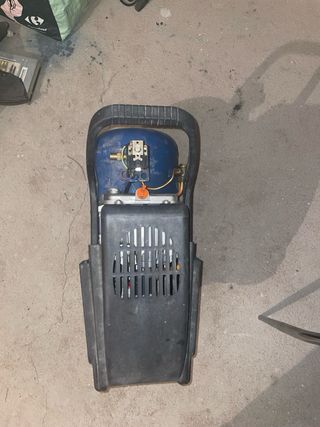 Compresor Dexter en buen estado, ideal para diversos trabajos. - Potencia de 2.5 HP. - Tanque de aire azul. - Rueda naranja para fácil transporte.