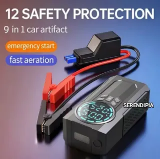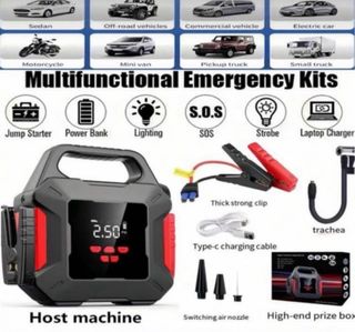 Está nuevo sin estrenar en su caja original. Arrancador multifunción de 6000A, válido para motores gasolina y diésel hasta 10L. Incluye compresor de aire 150 PSI con apagado automático, soplador para inflar/desinflar, power bank USB‐C 30W, linterna LED 800 lm y más de 10 sistemas de protección. Muy práctico para coche, moto, viajes y emergencias. Con accesorios completos. 1994