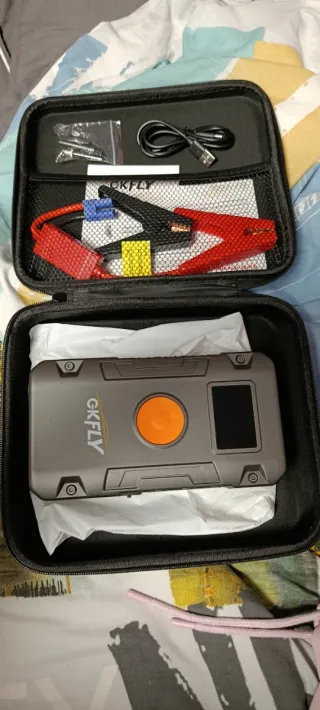 Arrancador de coche multifunción con compresor de aire integrado. Ideal para emergencias en carretera. Lo tiene todo para emergencias: ⚡ Arranca tu coche: Para gasolina (5.0L) y diésel (3.0L). 💨 Infla neumáticos: Compresor digital 150 PSI con parada automática. Tanto para coches como para motos y bicis. 🔋 Power Bank: Carga tu móvil rápido (USB-C). 🔦 Linterna LED: Para averías de noche. Incluye: Pinzas inteligentes, manguera, boquillas y cable de carga. ✅ Entrega en mano o envío por Wallapop.