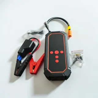 Arrancador de batería multifuncional con compresor de aire integrado. Incluye pinzas de conexión, cable de carga Tipo-C y boquillas para inflar - Capacidad de 39800mAh. - Función de Jump Starter. - Compresor de aire. - Iluminación LED. - Puerto USB para cargar dispositivos. - Pantalla digital. Compatible hasta coche 10L de gasolina o 8,5 L de Diesel Esta sin abrir, completamente nuevo sin ningun uso