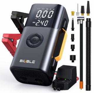 BIUBLE Arrancador de Batería Portátil 9500A con Compresor de Aire 150 PSI, Función de Inflado y Desinflado, (Compatible con Motores de Gasolina y Diésel 12.0L) 12V, Cables Inteligentes, Luz LED y Pantalla LCD.