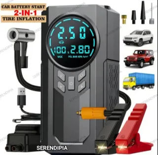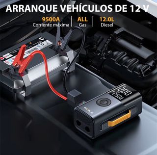 Arrancador y compresor de aire. ideal para emergencias en carretera. Incluye cables de arranque y accesorios. Se puede usar como Batería portátil Para cargar teléfonos o cualquier dispositivo -Arrancada motores de 5.0 Gasolina y 3.5 Diesel - Diseño compacto y portátil. - Pantalla digital. - Incluye cables de pinza de arranque (rojo y negro). - Cable de carga USB. - Estuche de almacenamiento. - Puedes inchar ruedas de bicicleta, patinete, moto, coche y pelotas/colchonetas. ⚠️ NUEVO A ESTRENAR⚠️ ⚠️Ver última foto⚠️