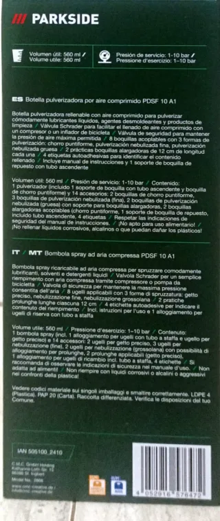 Botella pulverizadora aire comprimido Parkside