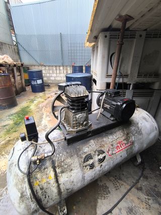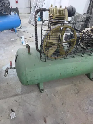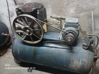 ¿Cansado de compresores modernos que se calientan a la media hora? Vendo este compresor industrial "de los de antes", construido para durar toda la vida. Ideal para talleres mecánicos, carpinterías o naves industriales que necesiten un flujo de aire constante y potente. Capacidad: Depósito de gran volumen (200 litros). Presión: Timbrado a 12 kg/cm² (según placa del Ministerio de Industria). Motor: Sistema de correas con cabezal bicilíndrico aleteado para una refrigeración óptima. Estado: Estructura de acero reforzado. Incluye manómetro de control y válvula de salida rápida. Seguridad: Rejilla de protección de correas