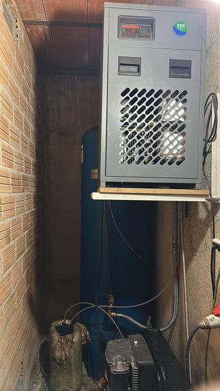 Compresor de aire industrial en buen estado, ideal para talleres o uso profesional. Se vende por falta de uso. - Motor potente. - Tanque de gran capacidad. - Incluye regulador de presión y manómetros.