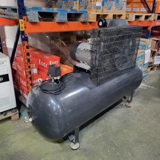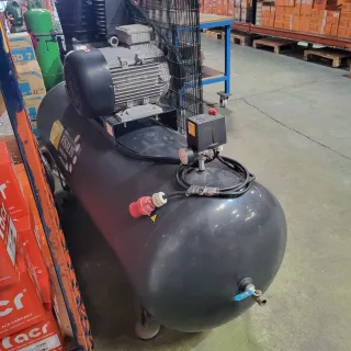 Compresor de aire de 3 caballos de fuerza. Es un compresor de un cilindro y tiene una capacidad de 300 litros de aire. - Potencia: 3 CV - Cilindros: 1 - Capacidad del tanque: 300 L
