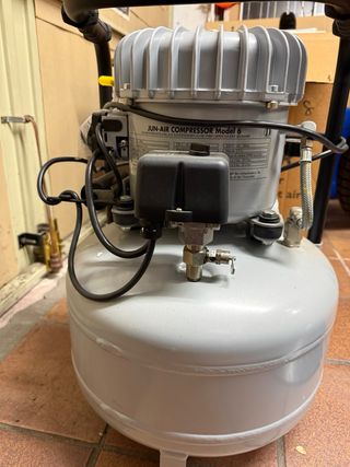 Compresor de la marca Dürr Dental, modelo Ref. 5282-1000-50. Funciona a la perfección. No disponemos de la factura por lo que no recordamos la fecha de compra pero se encuentra en perfecto estado.