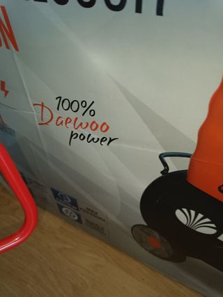 Compresor de aire Daewoo de 50 litros, en perfecto estado. Es un compresor potente y robusto, ideal para trabajos de bricolaje o profesionales. - Capacidad de 50 litros. - Marca: Daewoo. - Diseño naranja y negro. 2hp