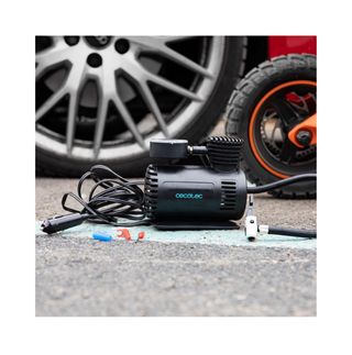 Compresor de aire portátil de la marca Cecotec. Incluye un manómetro para controlar la presión. - Diseño compacto y en color negro. - Conexión para coche.