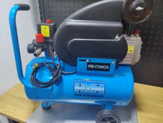 Compresor de aire con depósito de 24 litros. Ideal para diversas tareas. Recién cambiado el aceite - Capacidad del depósito: 24L. - Diseño compacto y portátil.