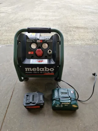 Compresor de aire portátil a bateria, marca metabo. Incluye una bateria y un cargador. Contacto: 670 73 74 01