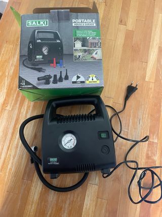 Compresor de aire Salki para casa y garaje. - Modelo portátil. - Funciona a 230V. - Incluye accesorios.