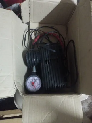 Compresor de aire portátil de la marca Casals, modelo T1260.Precio negociable - Voltaje: 12V - Presión máxima: 10 Bar - Longitud del cable: 3 metros - Incluye accesorios para inflado.