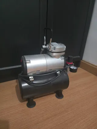 Se vende compresor de aire con aerógrafo. - Compresor de aire con calderin. - Aerógrafo incluido. - Diseño compacto y portátil.
