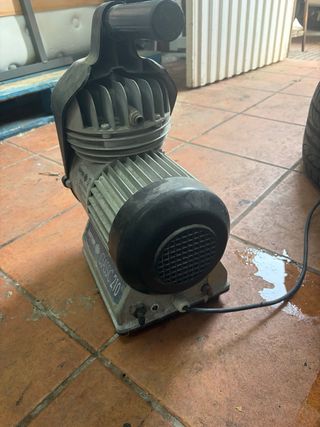 Compresor de aire de la marca Specair con una capacidad de 24 litros. Ideal para diversas tareas. Solo habría que rellenar su aceite y tapar una pequeña fuga que tiene de ahí su precio. Lo vendo porque me regalaron uno nuevo. - Diseño compacto y portátil. - Ruedas para facilitar el transporte. - Asa para un agarre cómodo.