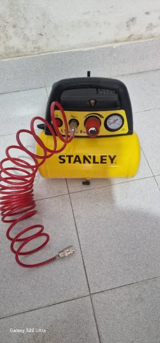 Compresor de aire STANLEY 6L – 1.5 HP – 8 Bar (como nuevo) Vendo compresor de aire marca Stanley, muy poco uso y en perfecto estado de funcionamiento El visor del manometro está vencido no afecta su funcionamiento ✔ Potencia: 1.5 HP ✔ Capacidad del depósito: 6 litros ✔ Presión máxima: 8 bar ✔ Incluye manguera en espiral con conexión rápida ✔ Compresor compacto y portátil, fácil de transportar ✔ Ideal para inflar ruedas, soplar polvo, trabajos de bricolaje, aerografía, etc. Funciona perfectamente, prácticamente como nuevo. 💰 Precio: 55 € Se puede ver y probar sin compromiso.