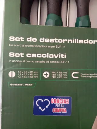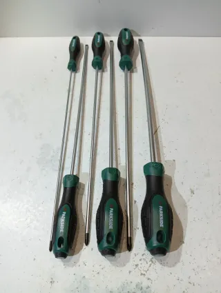 Producto Totalmente Nuevo en su Caja 📦 Para trabajos en sitio Largo 325mm 6 Destornilladores muy Largos de Acero al Cromo Vanadio PARKSIDE Incluye 3 Destornilladores Planos y 3 Estrella con puntas Magnéticas carpintero, carpintería, batería, pintór , pintura , reforma, obra , metal , percusión, batería radial, amoladora, sierra caladora circular láser , compresor, llave , atornillador, atornilladora, soldar , soldadura, aparato, pistola, grapadora, lijadora herramienta compresor, ingletadora, impacto, fresadora, broca 8Ah Smart aspiradora Lidl, inverter , lidl