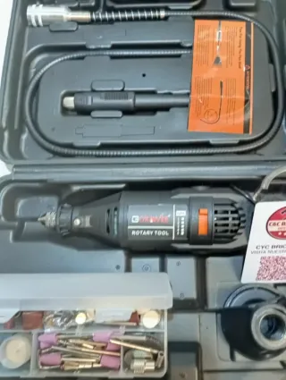 Kit de herramienta rotativa con accesorios. - Incluye herramienta rotativa. - Incluye eje flexible. - Incluye juego de accesorios para diversas tareas. - Estuche de transporte incluido. tags: Lidl, Bosch, Maquita, Dewalt, Stayer, Inverter, Hilti, Worx, Metabo, Einhell, carpintero, carpintería, batería, pintór, pintura, reforma, obra, metal, percusión, radial, amoladora, sierra caladora circular laser, compresor, llave, atornillador, atornilladora, soldar, soldadura, aparato, pistola, grapadora, lijadora herramienta compresor, ingletadora, impacto, fresadora, broca, aspiradora, taladro martillo,bricolaje,manualidades,lienzos
