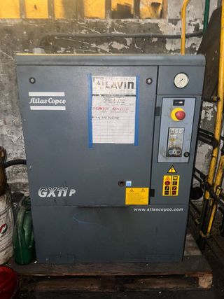 Compresor de tornillo Atlas Copco GX11P. Calderin de 500 litros Secadora de humedad - Modelo GX11P. - Marca Atlas Copco. - Tipo: Compresor de tornillo. En buen estado, lleva tiempo sin usarse