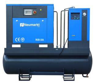 Compresor de tornillo Compacto Neumarkt NIB-10A con motor de 7,5 kW. - Potencia: 7,5 kW Nuevo a Estenar - Modelo: NIB-10A + Secador +Calderin 300L - Marca: Neumarkt Ind Presión: 8–10 bar | Caudal: 1,1 m3/min Compacto y listo para usar Garantía 2 años | Envíos a toda España