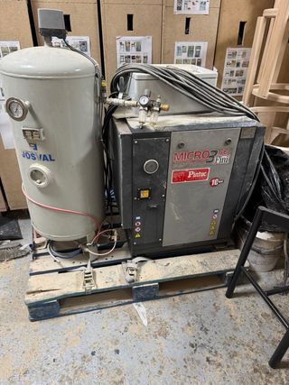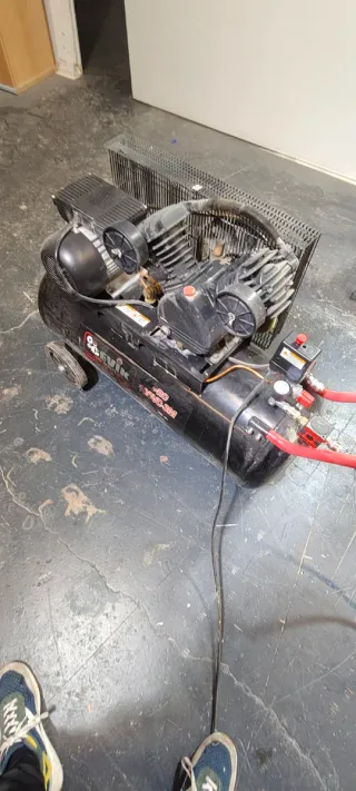 Compresor de aire industrial en buen estado, ideal para talleres o uso profesional. Se vende por falta de uso. - Motor potente. - Tanque de gran capacidad. - Incluye regulador de presión y manómetros.