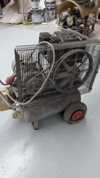 ¿Cansado de compresores modernos que se calientan a la media hora? Vendo este compresor industrial "de los de antes", construido para durar toda la vida. Ideal para talleres mecánicos, carpinterías o naves industriales que necesiten un flujo de aire constante y potente. Capacidad: Depósito de gran volumen (200 litros). Presión: Timbrado a 12 kg/cm² (según placa del Ministerio de Industria). Motor: Sistema de correas con cabezal bicilíndrico aleteado para una refrigeración óptima. Estado: Estructura de acero reforzado. Incluye manómetro de control y válvula de salida rápida. Seguridad: Rejilla de protección de correas