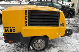 Compresor Kaeser M50 del año 2020. Equipo de aire comprimido en color amarillo. Año de fabricación: 2020 Horas de funcionamiento: 108 Combustible: Diésel Categoría del vehículo: EU O1 Dimensiones y peso: Longitud (mm): 3214 Ancho (mm): 1441 Altura (mm): 1370 CV: 44 CV / 33 kW Peso: 750 kg - Modelo: M50 - Año: 2020 - Marca: Kaeser