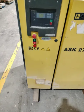Compresor de aire KAESER modelo ASK 27. - Color amarillo. - Panel de control digital. - Botones de control y parada de emergencia.