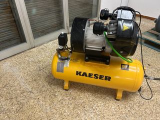 Compresor de aire Kaeser de color amarillo. - Depósito de 100 litros. - Motor eléctrico. - Manómetro para control de presión. Secador frigorifico incluido!!!