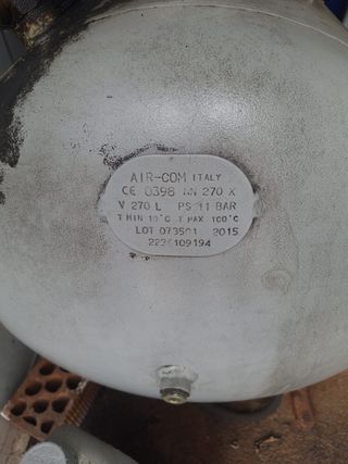 Compresor PUSKA 270L Trifásico - 11 Bar - Profesional taller Se vende compresor de aire industrial de alta capacidad. Marca de referencia PUSKA con depósito AIR-COM de 270 litros. Equipo robusto y fiable, perfecto para uso intensivo en talleres mecánicos, de pintura o carpintería. Capacidad: 270 Litros. Presión máxima: 11 Bar. Motor: Trifásico de alto rendimiento. Año fabricación depósito: 2015. En buen estado de funcionamiento, construcción europea de alta durabilidad, ideal para uso industrial. Aparcamiento en la puerta.