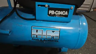 Compresor de aire MTM con depósito azul. - Modelo: PB-C24CA - Marca: MTM Tools & Accesorios - Color: Azul - Asa para transporte