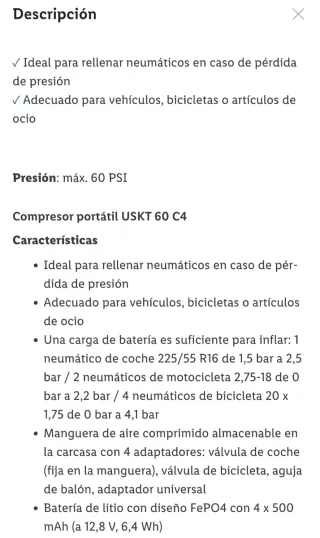 Parkside Compresor Recargable Portátil