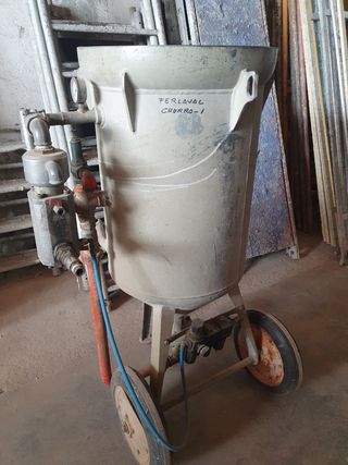 Equipo de chorro VIAL 160, del año 2000, que se utiliza para limpieza y tratamiento de superficies por chorro de abrasión, capacidad de 160 litros, alimentado por compresor (no incluido) a una presión máxima de 7 kg/cm2. Precio negociable.